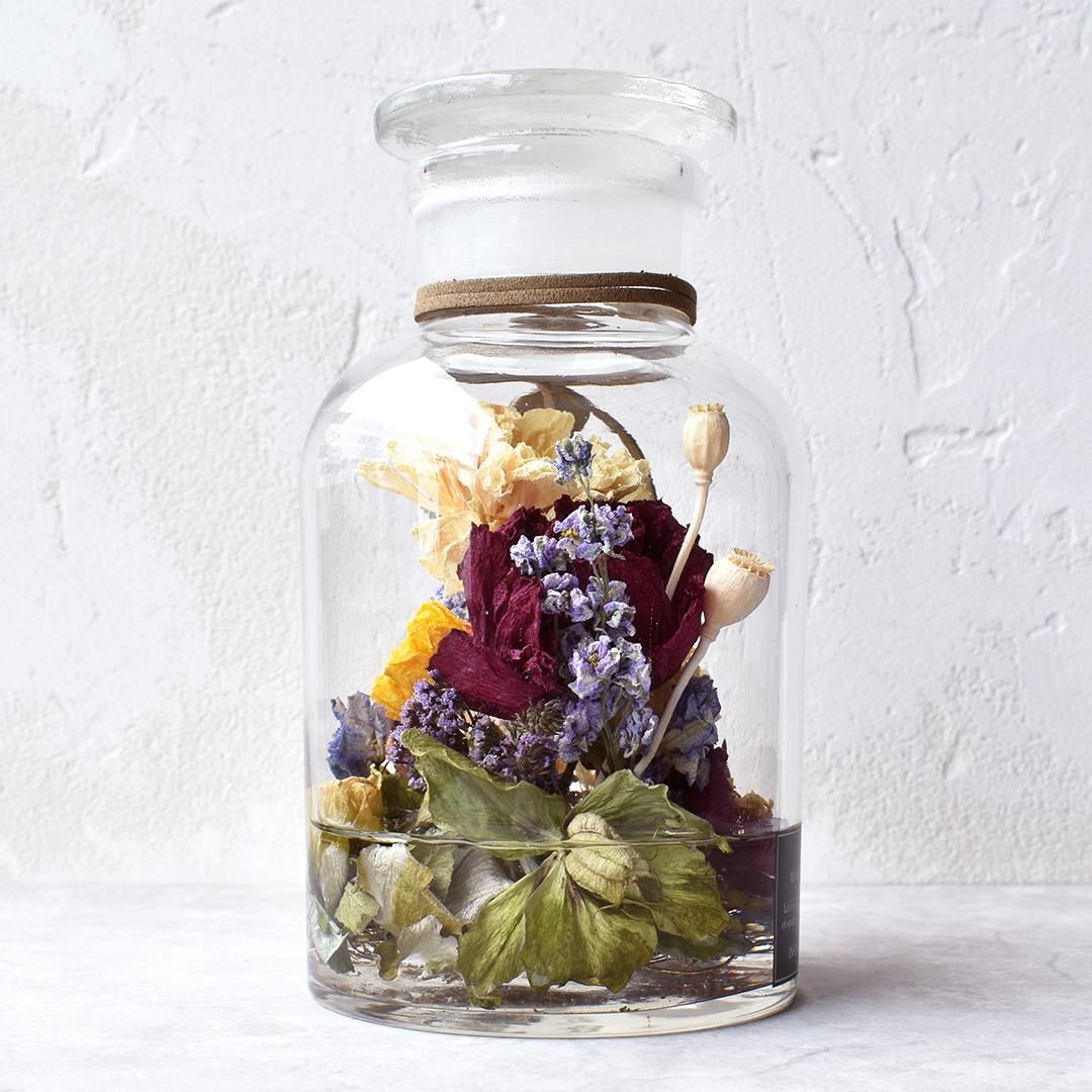 | 素材 | 容器:ガラス 花材:ドライフラワー、シリコン樹脂、シリコンオイル |