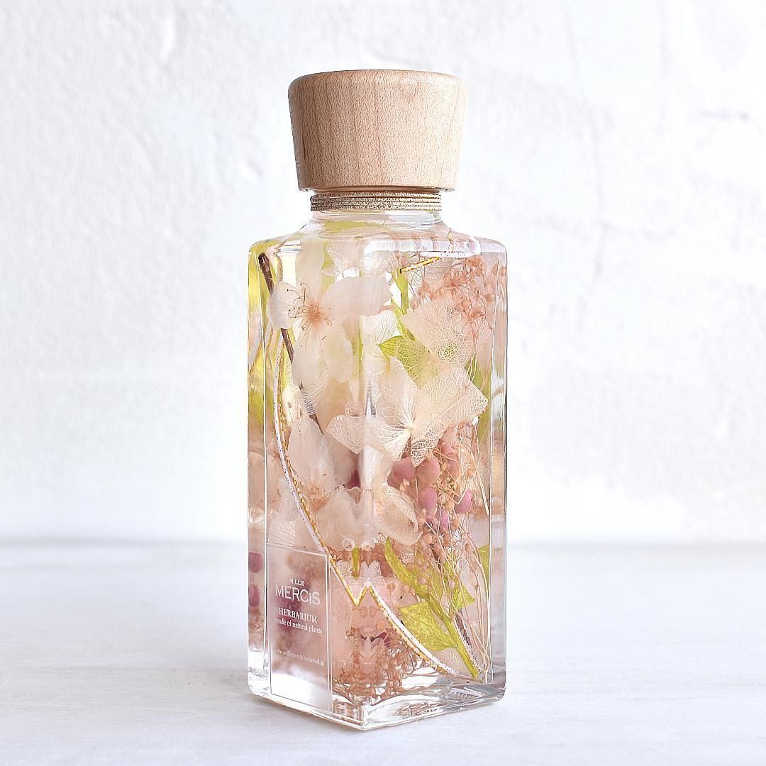 ・MiLLE MERCiSではシリコンオイルという酸化劣化や温度変化による変色がなく、長期間綺麗な状態でハーバリウムをお楽しみいただけるオイルを使用しています。